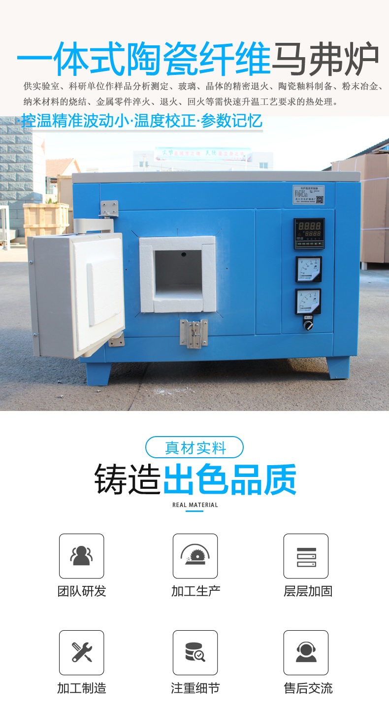 陶瓷馬弗爐改變了普通馬弗爐笨重,電爐絲易損壞,升溫速度慢等缺點,其性能達到進口同類產(chǎn)品水平。